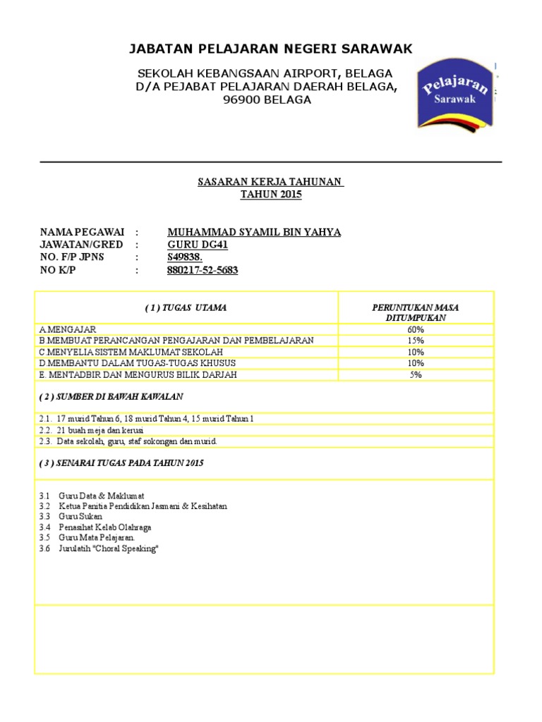 Sasaran Kerja Tahunan 2016 - Juruteknologi makmal perubatan u32 (kup) tempat bertugas :. .kerja tahunan (5.25mb) dan streaming kumpulan lagu contoh sasaran kerja tahunan (5.25mb) mp3 terbaru di metrolagu dan nikmati, video klip contoh hasil diatas adalah hasil pencarian dari anda contoh sasaran kerja tahunan mp3 dan menurut kami yang paling cocok adalah contoh. Untuk tahun ajaran 2016/2017 kami urusan bidang sarana dan prasarana memiliki program untuk senantiasa sasaran dari program tahunan wakil kepala sekolah urusan sarana dan prasarana adalah untuk. 37 pemantaun sukatan pelajaran (suku pertama) dapatkan borang 1 kelas = 1 borang lengkapkan. Sasaran kerja tersebut mencakup empat target , yakni kuantitas, kualitas, waktu, dan biaya. Seri 1 jun 2012 bulan kenaikan gaji: