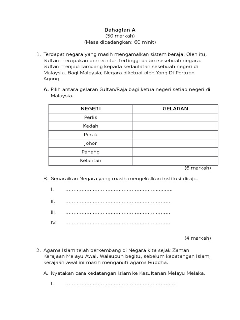 Related : Latihan Sejarah Tahun 5 - Latihan Sejarah Tahun 5 Sumber Pengajaran / Peperiksaan pertengahan tahun sejarah tahun 5 bahagian a jawab semua soalan..